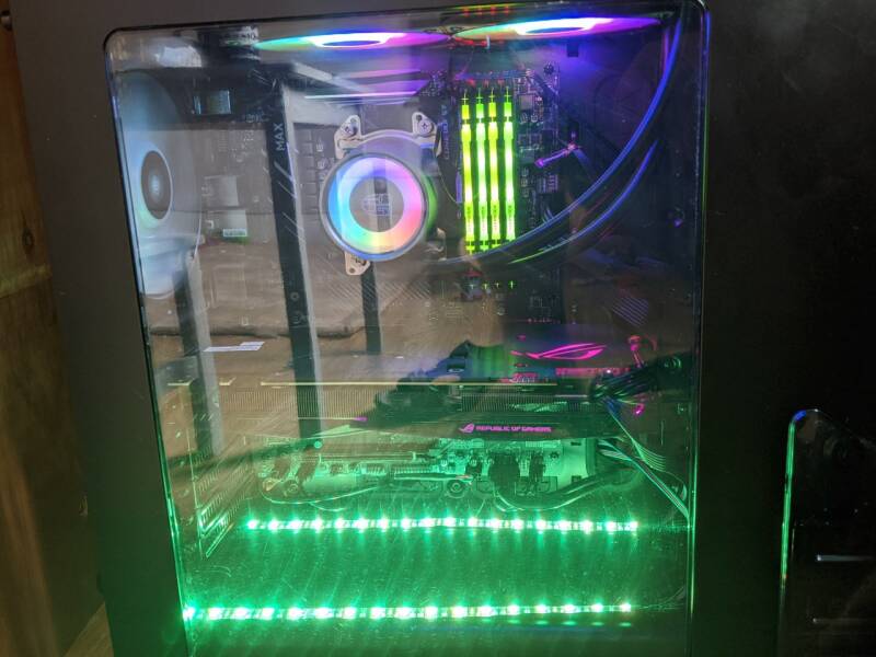 This is my own pc. It is an upgrade from my last pc and cleaned every month as it is a dust magnet. I also cable managed this pc, so it is easy for me to get into my pc and to the hard drives. I use an all in one liquid cooler to control the temperature better than it's stock cooler.
